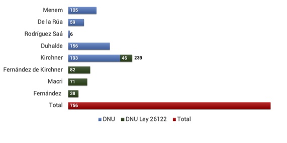 En otro orden de asuntos, según datos proporcionados por Infoleg y por la Secretaría Legal y Técnica, se han dictado los siguientes DNU por presidencia desde 1994: