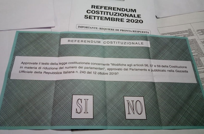 Los días 20 y 21 de septiembre se llevará a cabo un referéndum en la República de Italia para aprobar o rechazar el texto de la ley constitucional titulado "Enmiendas a los artículos 56, 57 y 59 de la Constitución" sobre la reducción del número de parlamentarios. El electorado deberá elegir por el sí o por el no conforme el procedimiento de consulta popular.